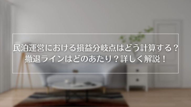 この記事では、民泊事業における損益分岐点、撤退ラインについて考えていきます。